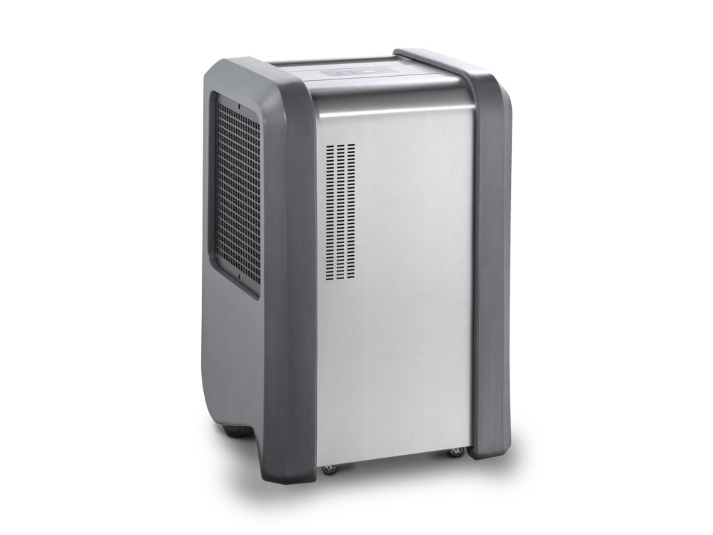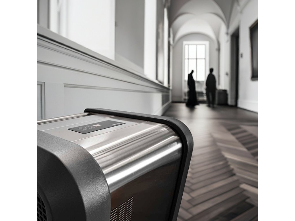 Profesionální velkokapacitní odvlhčovač pro velké prostory vybavený bezdrátovým čidlem, vhodný i k řízení vlhkosti v mikroklimatické zóně.